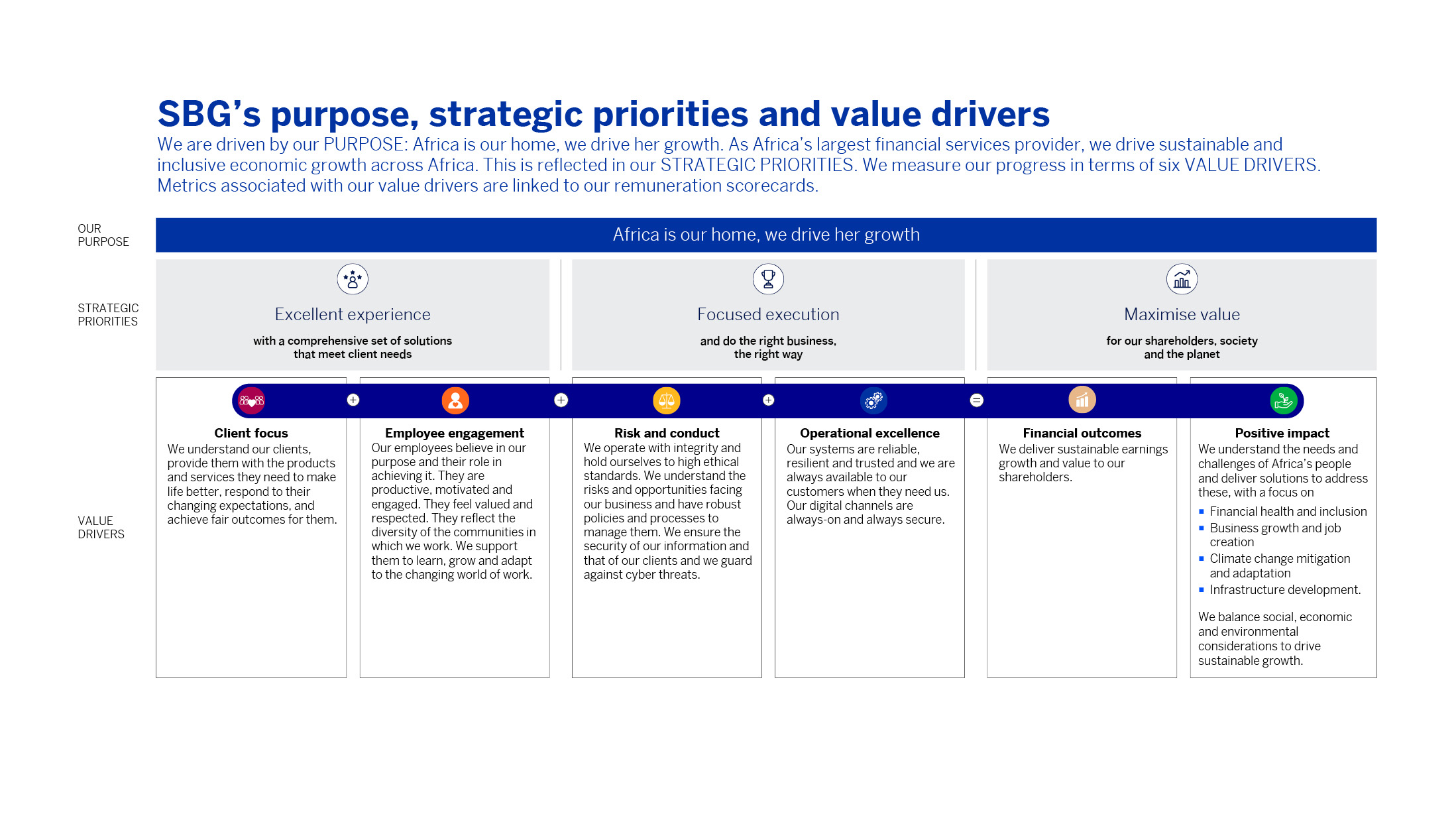 We aim to maximise our positive social, economic and environmental impact and effectively manage risk, to support inclusive and sustainable growth in Africa.