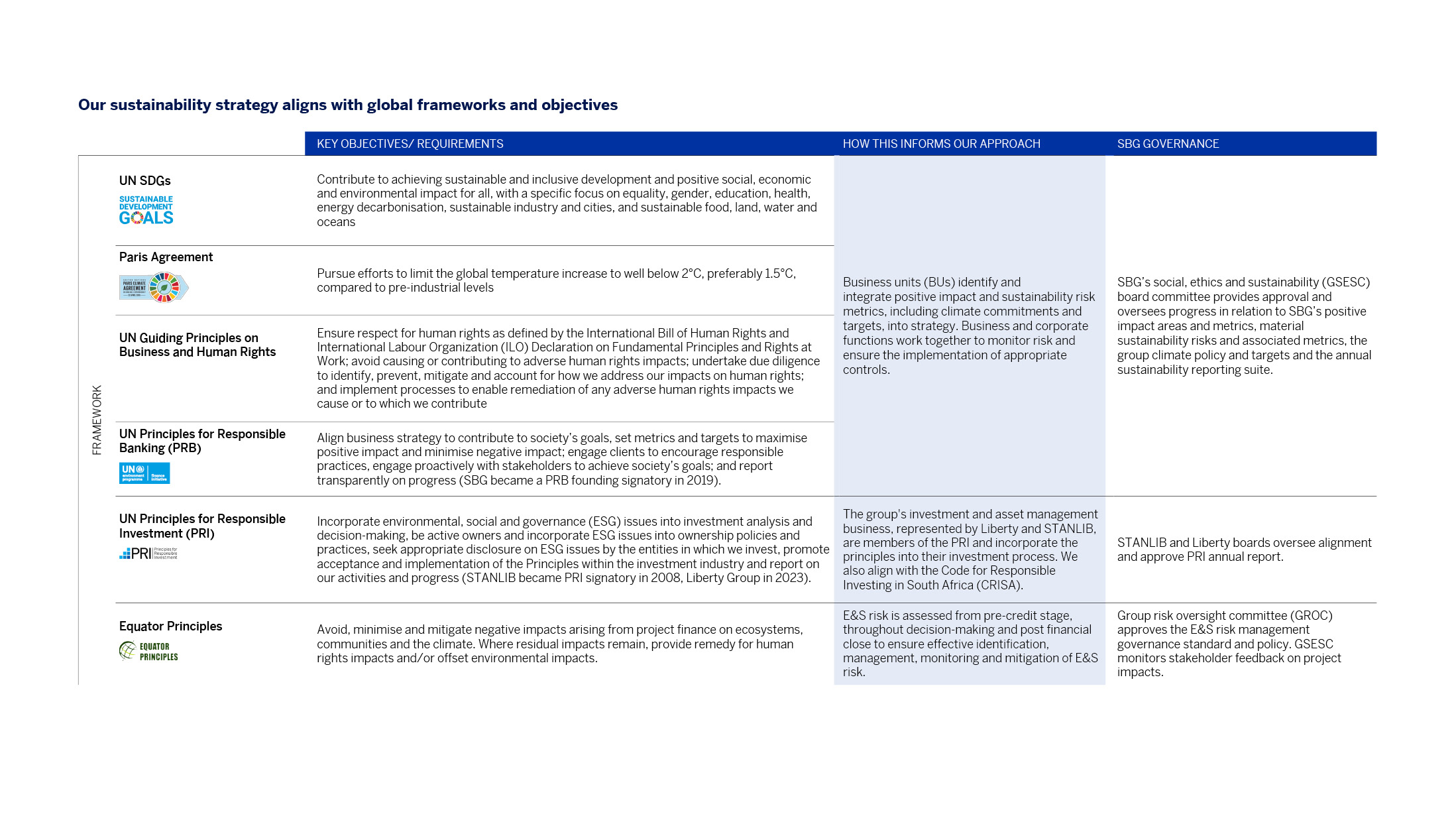 Effective management of sustainability risk is embedded in our policies, processes, and governance structures.